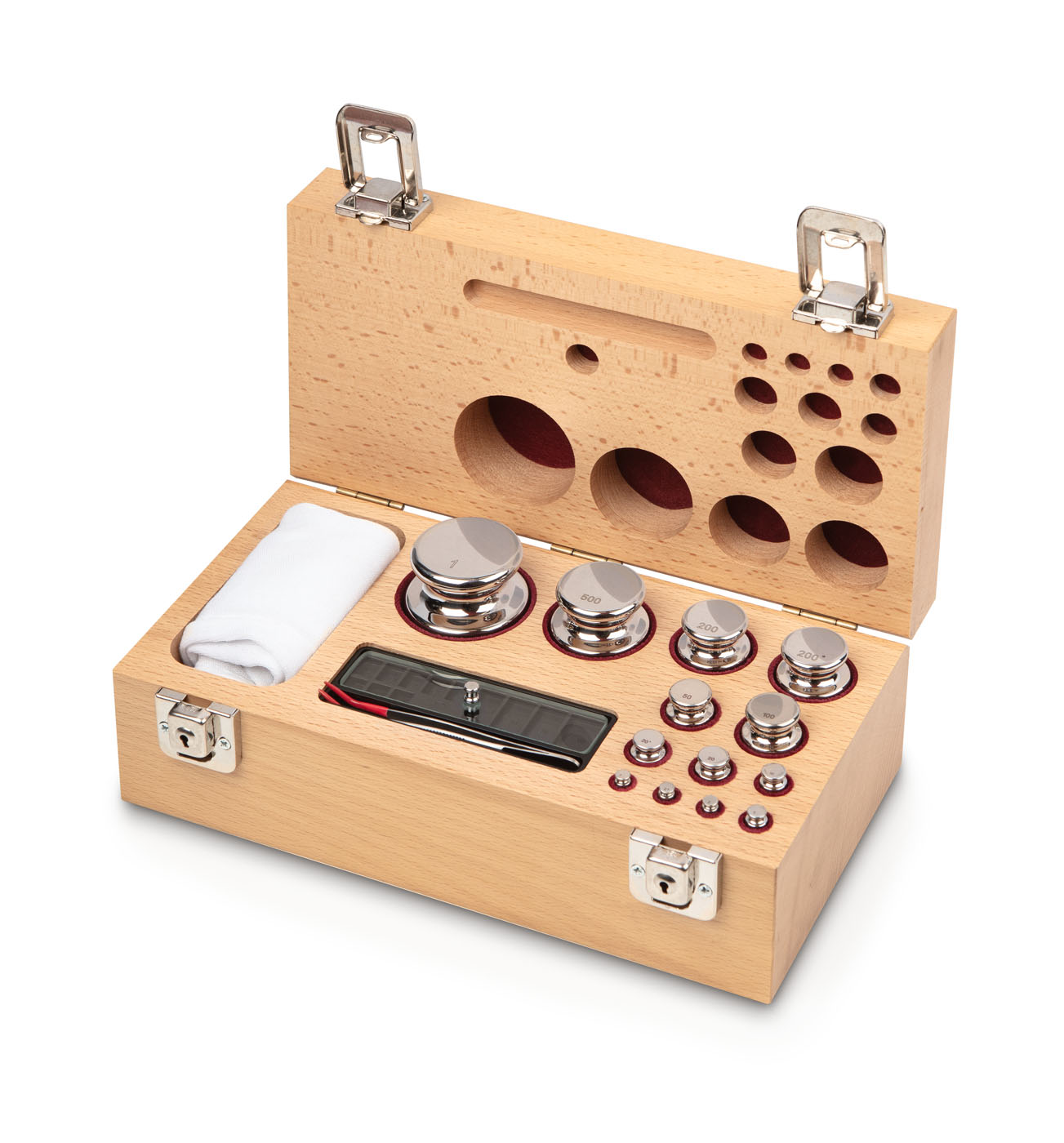 Gewichtssätze im Holzetui, Edelstahl poliert