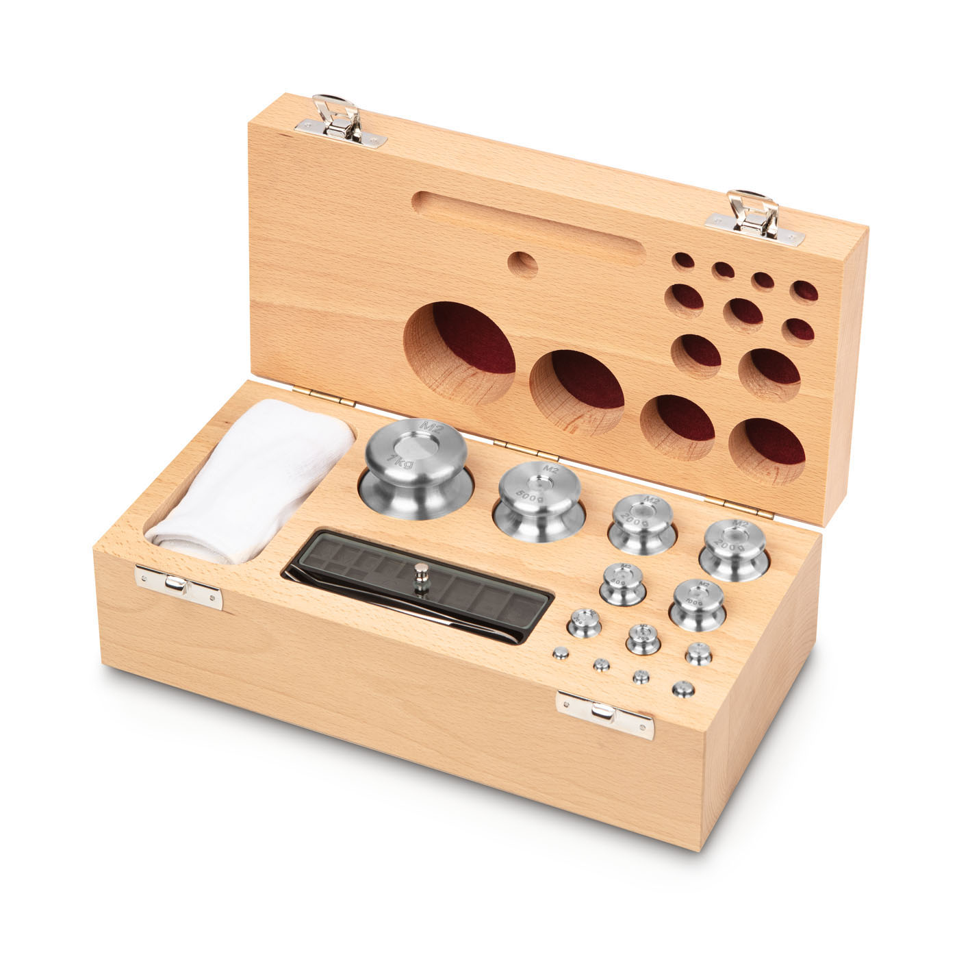 Gewichtssätze im Holzetui, Edelstahl feingedreht